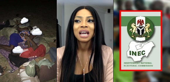 Toke Makinwa, who shared a photo of some corps members sleeping outside and waiting to work in the 2019 elections, furiously asked why “we love to embarass ourselves so much”. Toke further wondered why INEC waited till 2a.m to announce the postponement of elections, she wrote on Instagram;